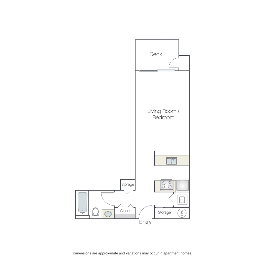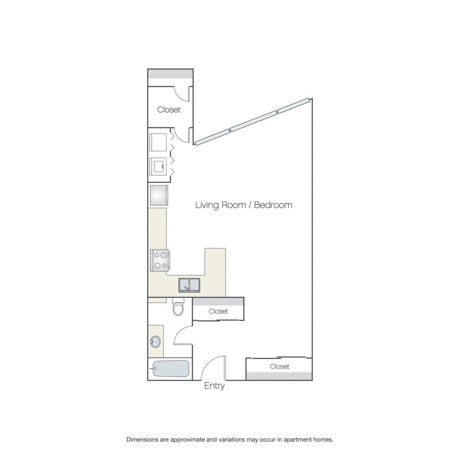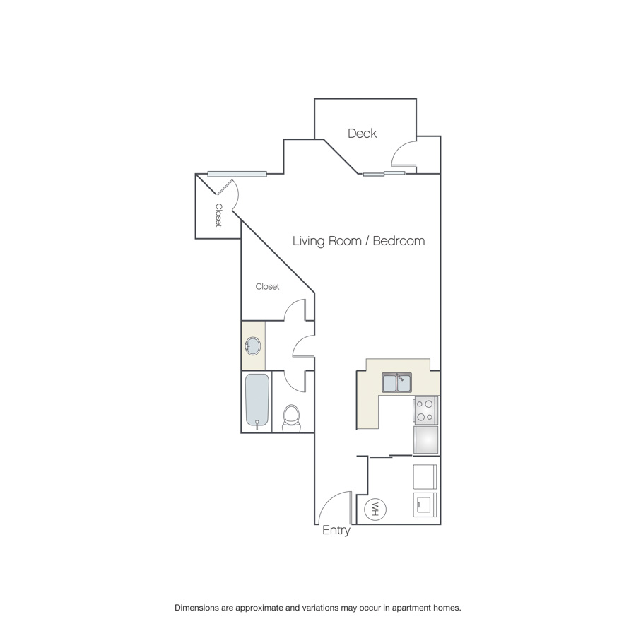 Rendering of the Clay floor plan with a Studio bedroom and 1 bathroom[s] at Griffis Belltown