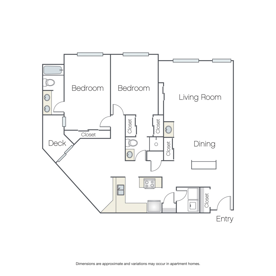 Drawings are approximate and floor plans are subject to change. Interior photographs are representative of the floor plan and may not depict the actual unit. Finishes may vary by unit. Additional lease terms may be available during the application process. Lease term, rent amount, deposit amount, move-in special and date available are subject to change without notice. Terms and Conditions. View Fees.
