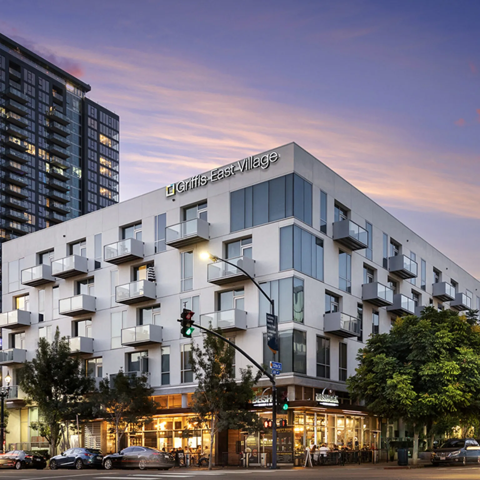 Explore CommunityAt Griffis East Village, we offer studio, one, and two-bedroom pet-friendly apartments in San Diego. Enjoy in-home washer and dryers, quartz countertops, a 24-hour fitness center, and an expansive rooftop deck. Our community provides you easy access to dining, shopping, arts, entertainment and recreation. Schedule a tour to learn why we are the best of San Diego.
