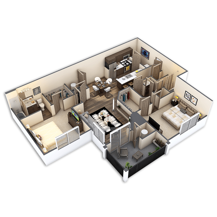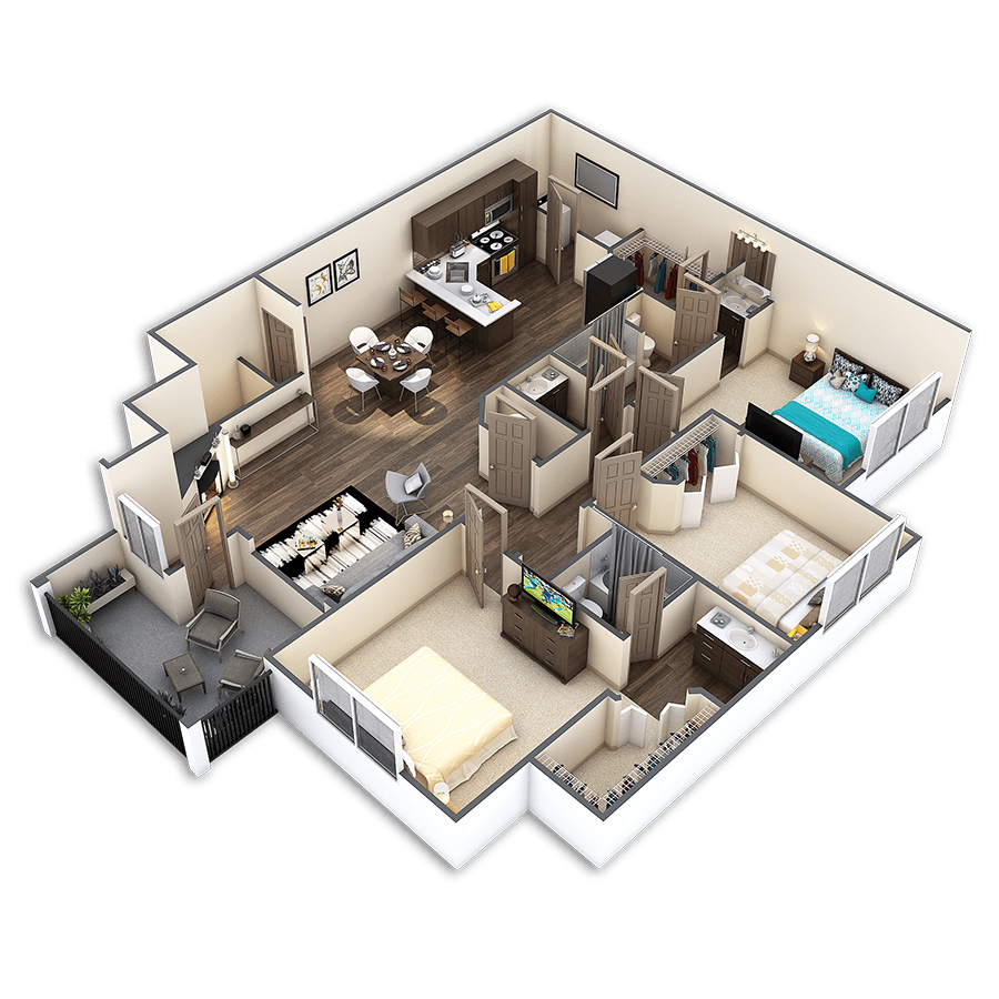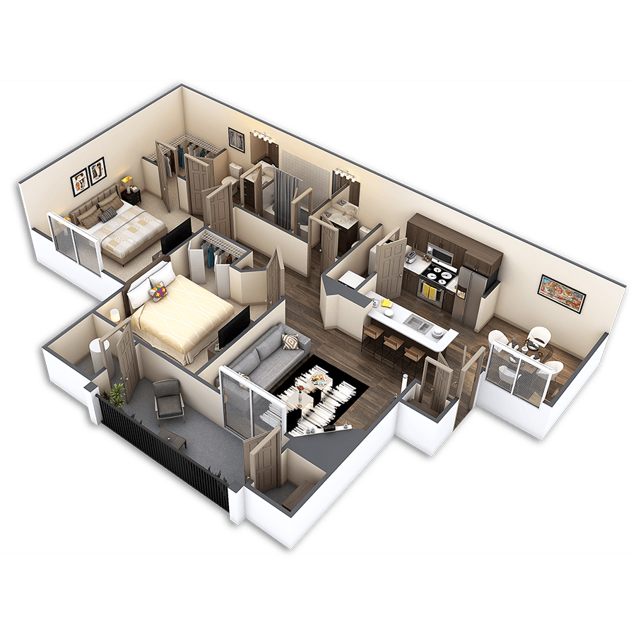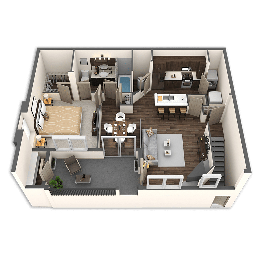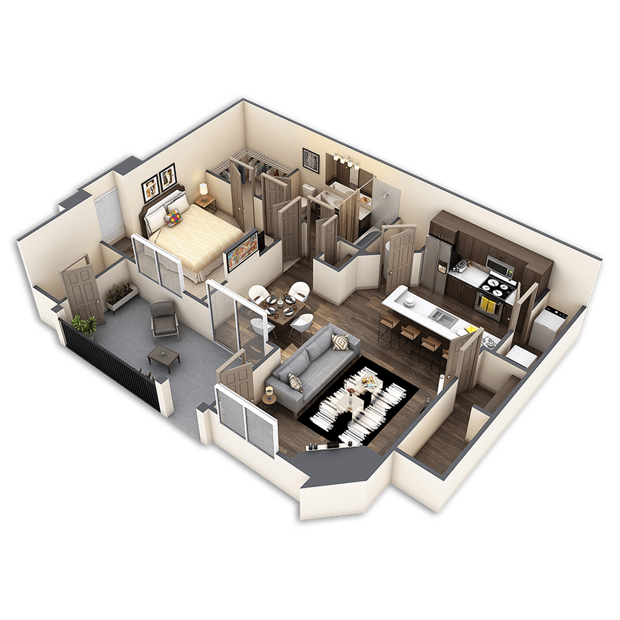 Browse our pet-friendly one, two, and three-bedroom floor plans. Enjoy a patio or balcony, spacious closets, and wood-style flooring in select homes. Schedule your self-guided tour, in-person tour, or virtual tour to see why you will love living at Griffis Lafayette Station near East Boulder.