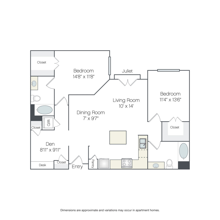 Drawings are approximate and floor plans are subject to change. Interior photographs are representative of the floor plan and may not depict the actual unit. Finishes may vary by unit. Additional lease terms may be available during the application process. Lease term, rent amount, deposit amount, move-in special and date available are subject to change without notice. Terms and Conditions. View Fees.