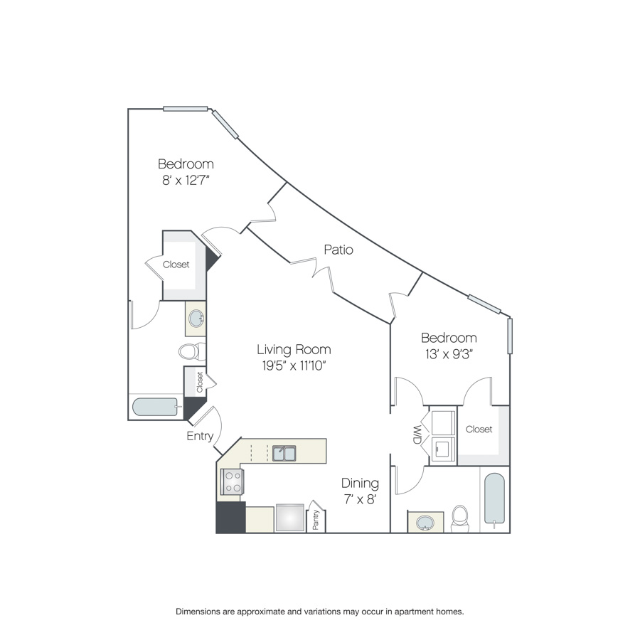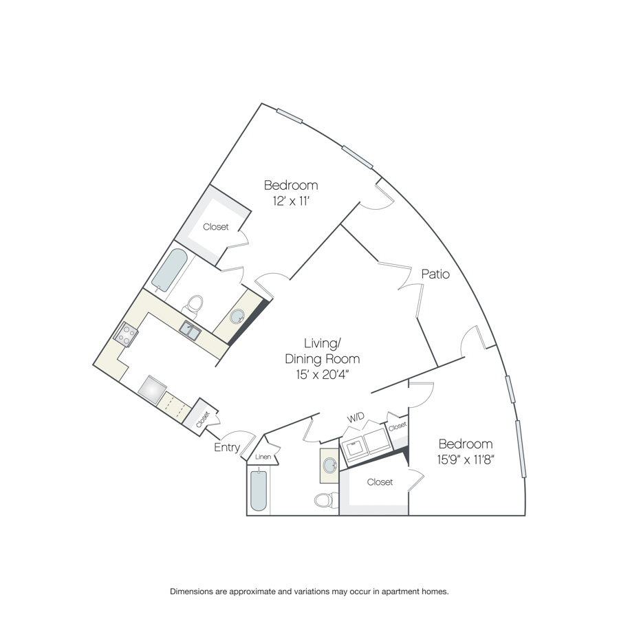 Drawings are approximate and floor plans are subject to change. Interior photographs are representative of the floor plan and may not depict the actual unit. Finishes may vary by unit. Additional lease terms may be available during the application process. Lease term, rent amount, deposit amount, move-in special and date available are subject to change without notice. Terms and Conditions. View Fees.