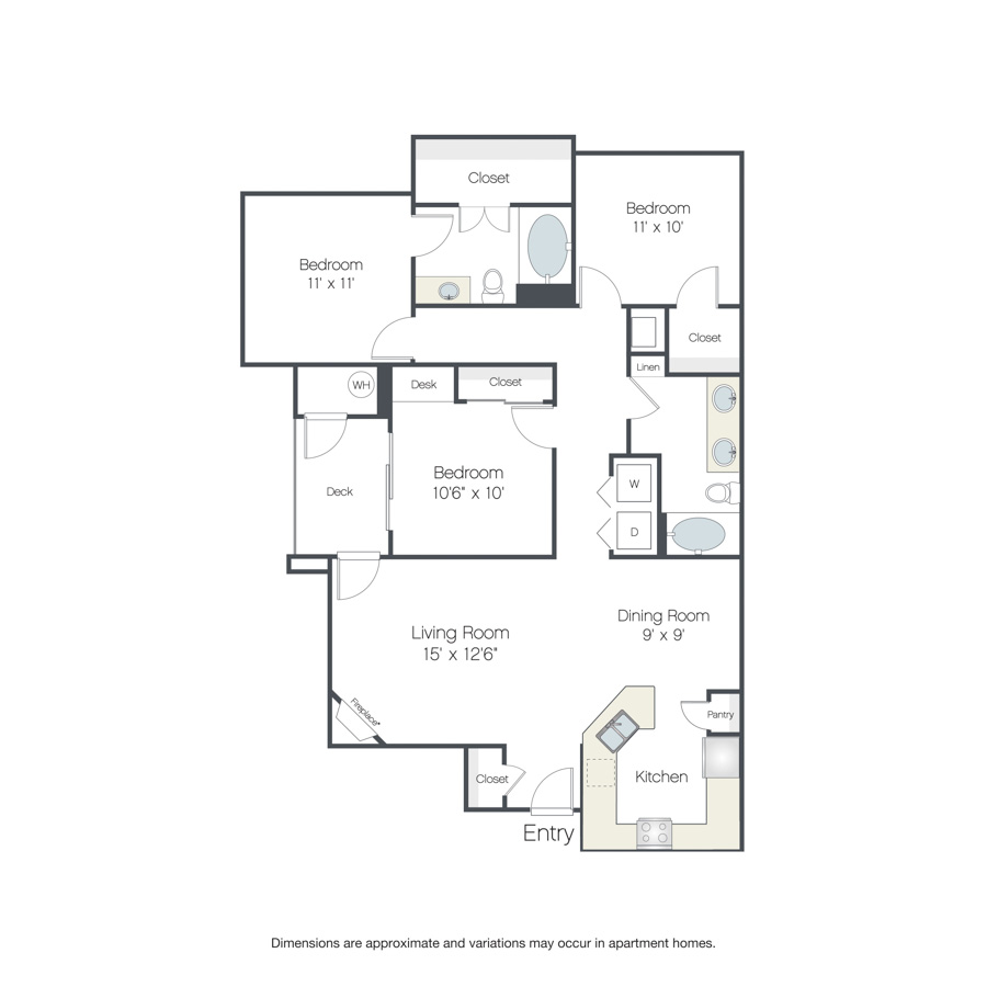 Drawings are approximate and floor plans are subject to change. Interior photographs are representative of the floor plan and may not depict the actual unit. Finishes may vary by unit. Additional lease terms may be available during the application process. Lease term, rent amount, deposit amount, move-in special and date available are subject to change without notice. Terms and Conditions. View Fees