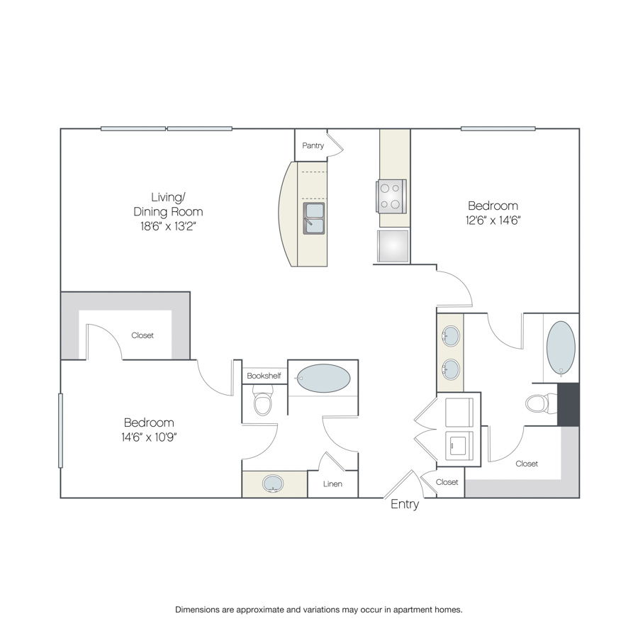Rendering of the Tel Aviv floor plan with 2 bedroom[s] and 2 bathroom[s] at Griffis at The Domain