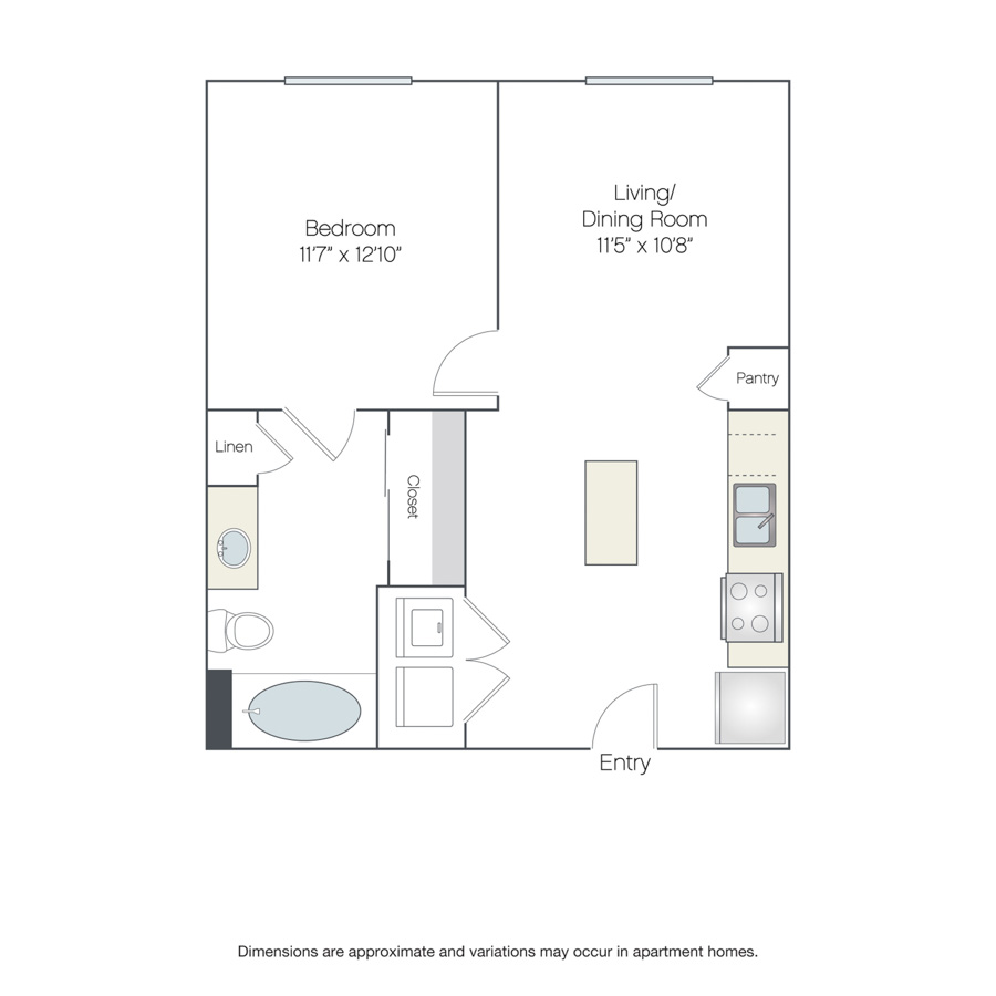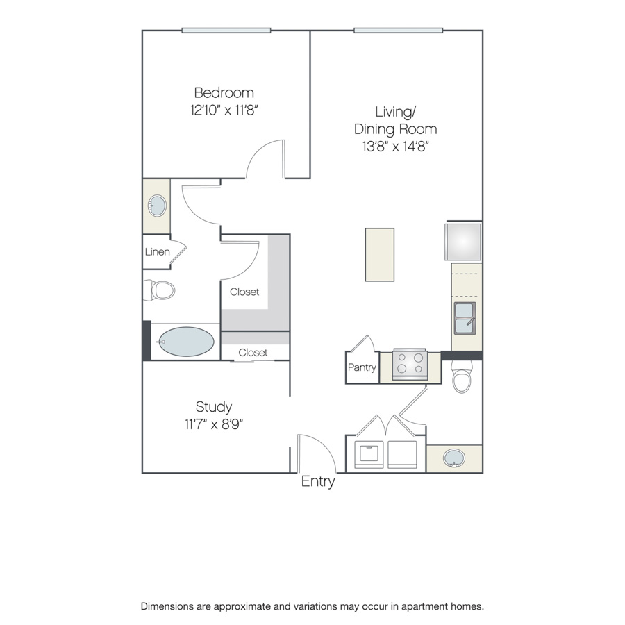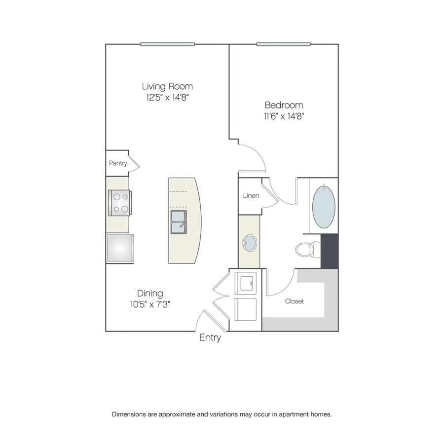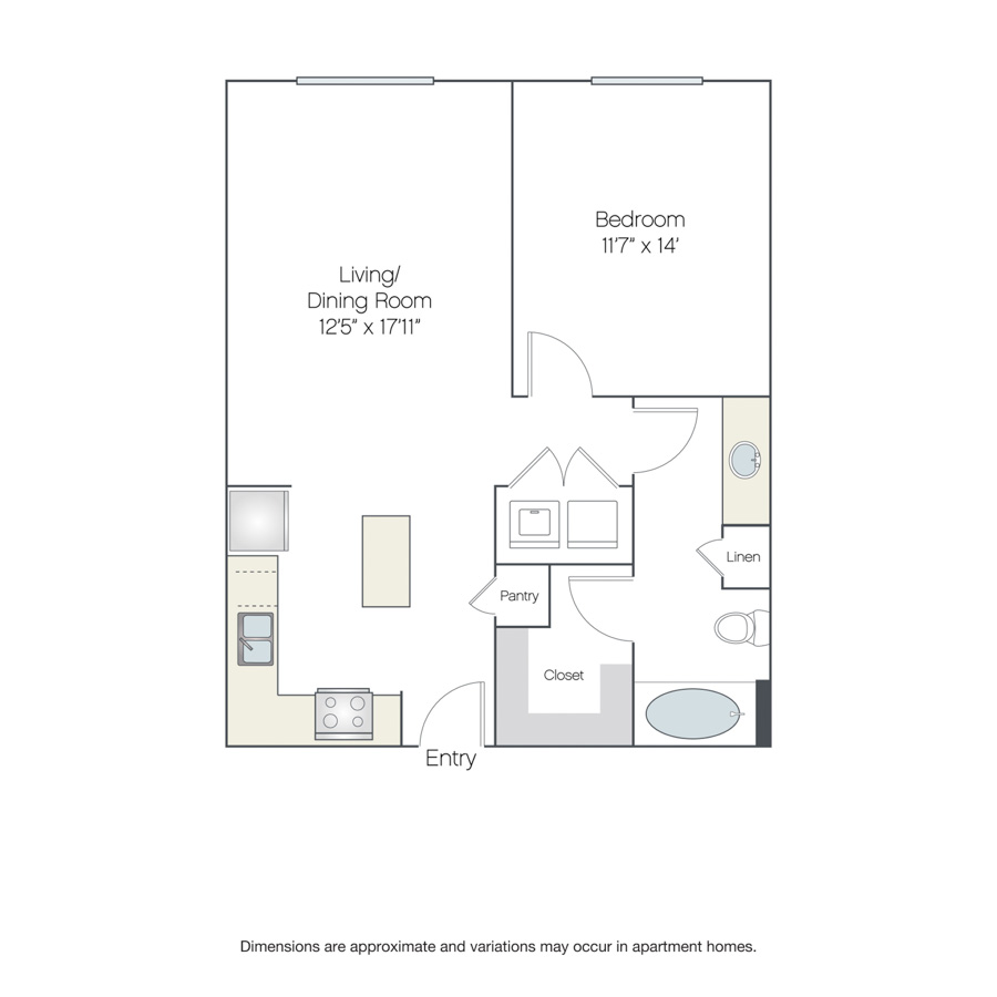 Rendering of the Milan floor plan with 1 bedroom[s] and 1 bathroom[s] at Griffis at The Domain