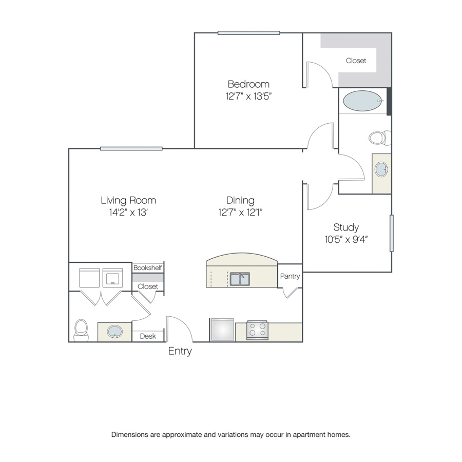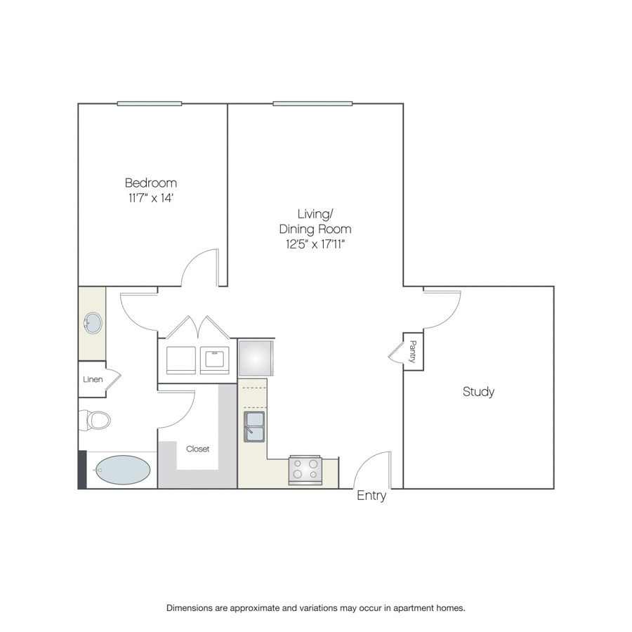 Rendering of the Paris floor plan with 1 bedroom[s] and 1 bathroom[s] at Griffis at The Domain