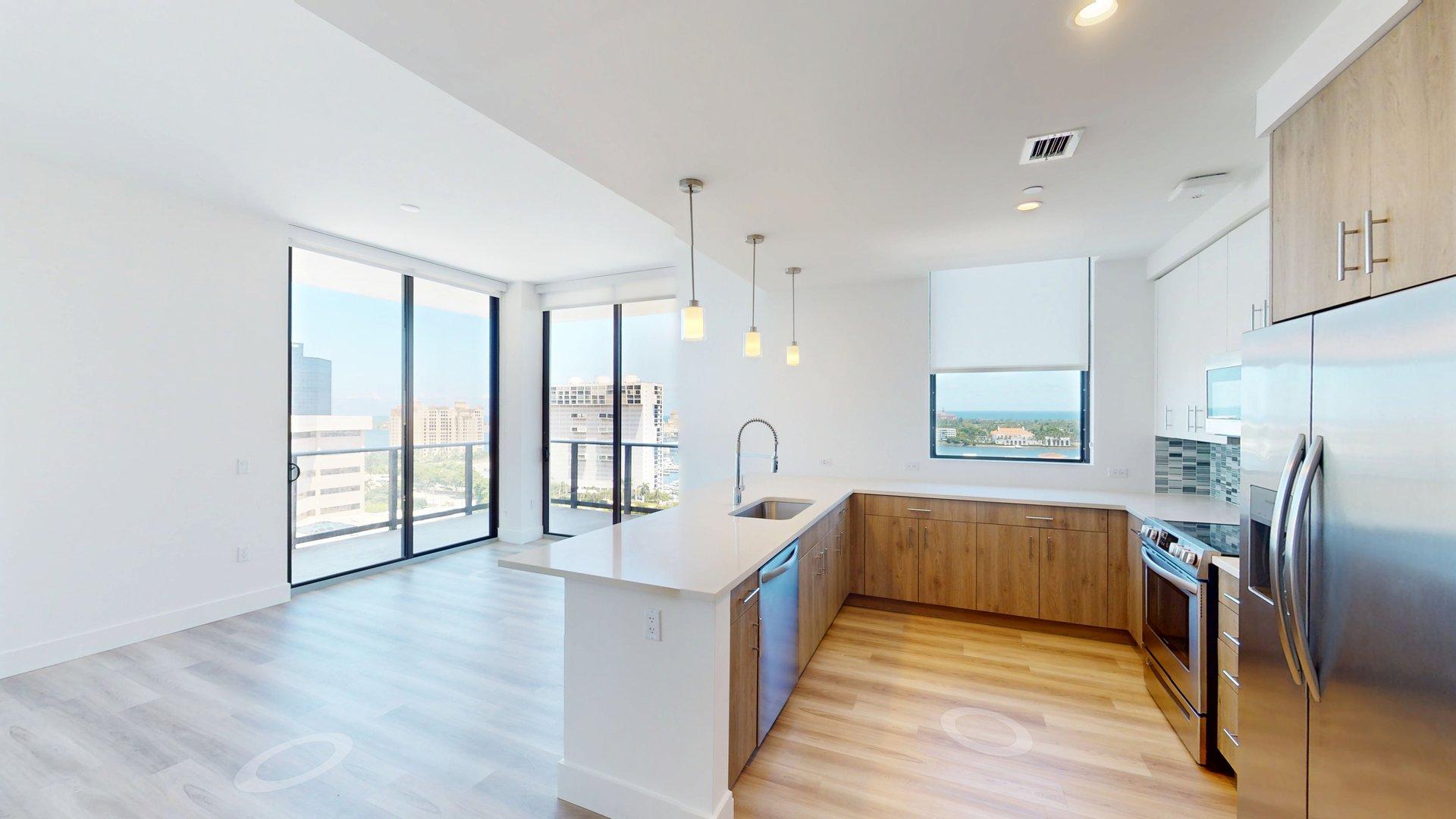 Browse our pet-friendly studio, one-, two-, and three-bedroom floor plans, plus premium penthouses. Our apartments feature an in-home washer and dryer, stainless steel appliances and high ceilings. Schedule your self-guided, in-person, or virtual tour to explore our community and learn why you will love living at Griffis West Palm in West Palm Beach, FL.